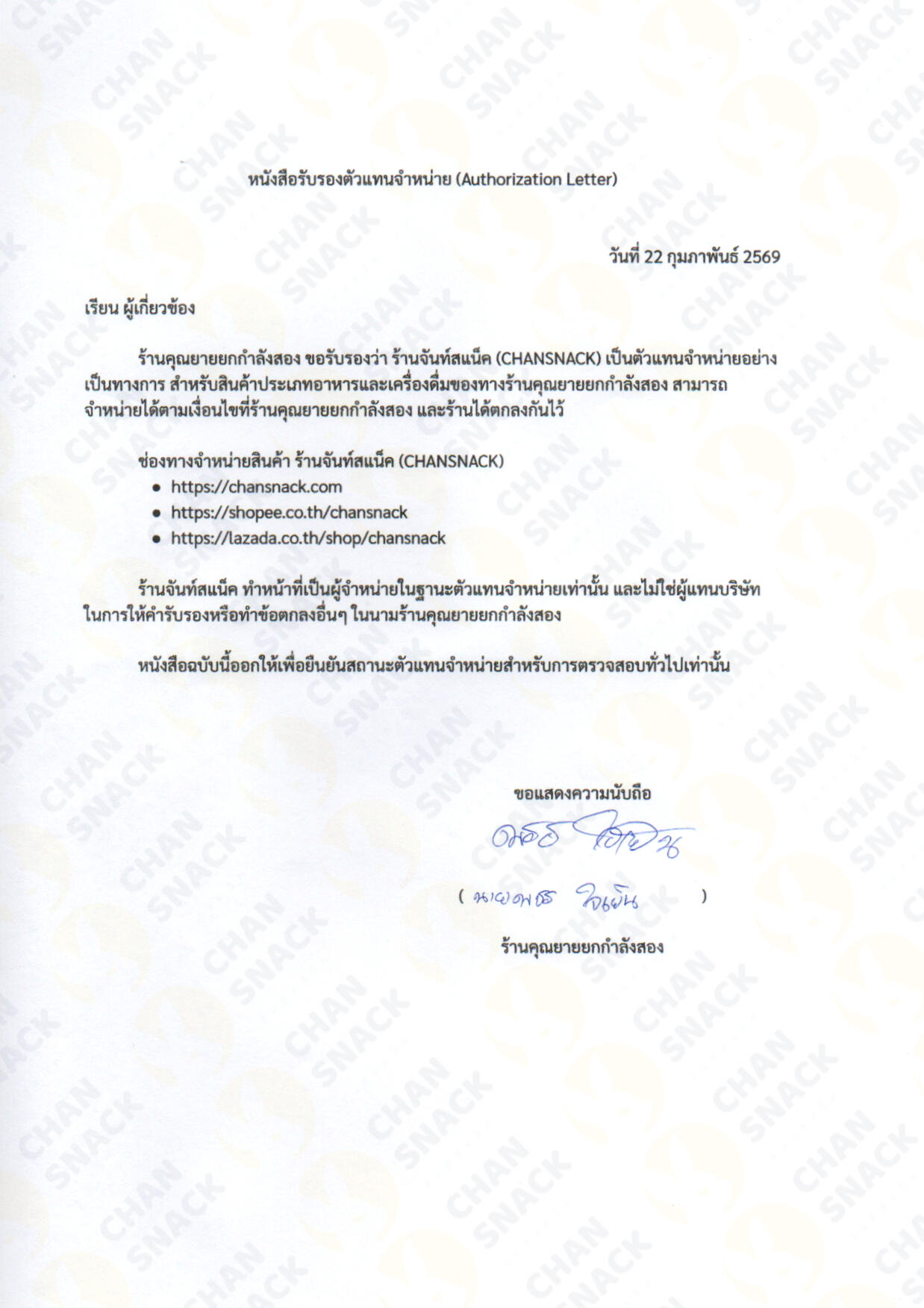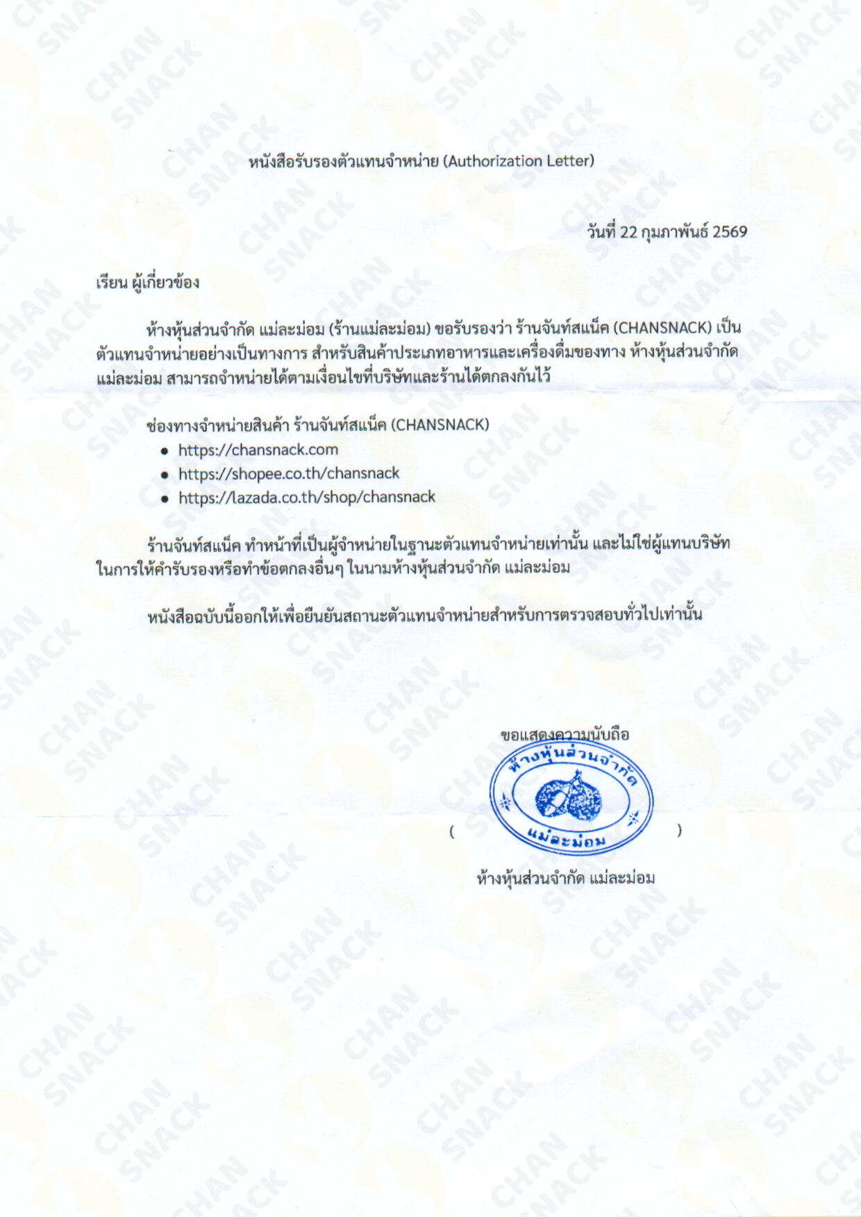 ร้านของเราได้รับป้าย “ร้านค้าแนะนำดีเยี่ยม” การันตีคุณภาพสินค้า การจัดส่ง และบริการ จาก Shopee อย่างเป็นทางการ โดยมีป้ายรับรองแสดงบนหน้าร้านและสินค้าทุกชิ้นที่จัดจำหน่ายshopee.co.th/chansnack